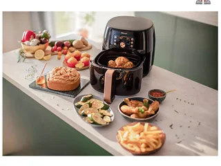 گنجایش ۵.۶ لیتر معادل ۱ کیلوگرم مواد غذایی، مناسب برای ۴ نفر، دارای برنامه پخت متنوع شامل: سیب زمینی یخ زده، سیب زمینی تازه، مرغ، ماهی، کیک، گوشت،گریل کردن سبزیجات، دارای سیستم گرم نگه دارنده، قابلیت شستشو لوازم جانبی در ماشین ظرفشویی، طراحی جدید سرخ کن های فیلیپس که در حین پخت مواد غذایی قابل مشاهده میباشد و دیگر نیاز به خارج کردن سبد و ظرف برای چک کردن پخت مواد غدایی نیست، سرخ کردن مواد غذایی بدون نیاز به روغن فقط برای سبزیجات و سیب زمینی یک قاشق روغن نیاز است،