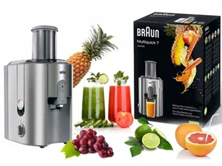 ابمیوه گیری فوق العاده و حرفه ای براون با رنگ بدنه نقره ای و قدرت 1000 وات واقعی که قابلیت میکس انواع میوه های سخت با سبزیجات را دارد.این دستگاه آبمیوه گیری با یک ظرف 2 لیتری عرضه شده و تفاله را به صورت جداگانه در محفظه پشت ذخیره میکند.تفاله های خروجی تا 95 درصد خشک بوده که میتوان گفت حتی یک قطره از اب میوه دور ریخته نخواهد شد.این ابمیوه گیری دارای سیستم ضد چکه بوده که به محض برداشتن ظرف مخصوص اب میوه شیر راه قطع کرده و مانع از چکه میشود.رنگ بدنه این دستگاه کاملا ضد لک بوده و به راحتی تمیز میشود.تیغه دستگاه استیل ضد زنگ بوده که توسط تکنولوژی کشور آلمان بالانس گردیده و هیچ لرزشی نخواهد داشت.صدای این دستگاه بسیار پایین در حد 39 دسی بل میباشد. طراحی این دستگاه در کشور آلمان بوده و در کارخانه کشور مجارستان و یا در کارخانه مستقر در کشور چین تولید میگردد اما به هیچ عنوان تغییری در کیفیت اصلی نداشته و برند براون همواره نام و برند خود را به عنوان یک تولید کننده با کیفیت برتر حفظ خواهد کرد.