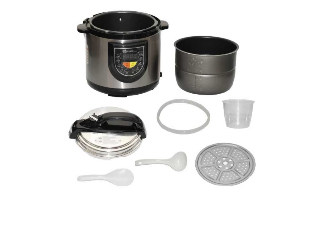 زودپز برقی فوما FU-1200 با ظرفیت 6 لیتری، توان 1000 واتی و 10 برنامه پخت، ابزاری بینظیر برای پخت سریع برنج، خورش، سوپ و کیک است. ویژگیهایی مانند دیگ نچسب تفلون، سوپاپ اطمینان، بدنه عایق حرارت و نمایشگر با دکمههای فیزیکی، تجربهای ایمن و حرفهای را ارائه میدهند