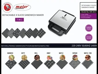 ساندویچ ساز مایر مدل MR-3017 دستگاهی بینظیر است که مجهز به توان مصرفی ۱۴۰۰ وات میباشد. این توان باعث آماده شدن غذاها در کوتاه ترین میگردد. هنگامی که دستگاه روشن میشود، تشعشع مادون قرمز از سیم پیچ های فلزی ایجاد میشود که نان را گرم میکند. این دستگاه داری ۷ عدد سینی اسلایس ساز است وامکان تهیهی غذا در ۷ حالت مختلف را فراهم میکند. این صفحهها از جنس تفلون میباشند و از چسبیدن و سوختن موادغذایی جلوگیری میکنند. به کمک این دستگاه میتوانید از قابلیتهای؛ اسنک ساز، وافل ساز، گریل، سمبوسه، دونات ساز، نوتپلت ساز بهره ببرید.