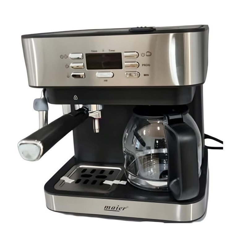 اسپرسو ساز مایر مدل MR-431 از جمله محصولاتی است که کارایی فوق العاده عالی دارد و عملکرد بی نظیری دارد. توجه داشته بیشد که این اسپرسو ساز توانایی فوق العاده ای دارد و به شما این امکان را می دهد تا توسط آن قهوه، کاپوچینو، اسپرسو، آب جوش و … را آماده نمایید و نهایت لذت را از آن ببرید. توجه داشته باشید که این اسپرسو ساز از توان 850 واتی بهره می برد که این امر در کارایی آن بسیار موثر واقع شده است. از دیگر ویژگی های این محصول می توان به فشار بخار 20 بار اشاره نمود که بسیار عالی می باشد و از جمله ویژگی بارز این محصول می باشد. از دیگر قابلیتهای این اسپرسو ساز مایر مدل MR-431 می توان به سینی چکه گیر، سیستم کاپوچینو ساز، قابلیت تولید کف شیر، نمایشگر LED و … اشاره نمود. در ضمن توجه داشته باشید از دیگر ویژگی های این محصول طراحی زیبای آن می باشد. همان گونه که می دانید ظاهر یک محصول در انتخاب آن بسیار مورد توجه قرار می گیرد. خوشبختانه اسپرسو ساز مایر مدل MR-431 نیز از طراحی بسیار زیبایی بهره می برد. به طوری که ظاهری بسیار شیک دارد. بدنه این محصول مشکی و نقره ای می باشد که همین امر آن را بسیار مورد توجه قرار داده است و زیبایی آن را دو چندان نموده است. در ضمن ناگفته نماند که جنس بدنه این محصول از استیل ضد زنگ می باشد. از دیگر ویژگی های ظاهری این محصول این است که از یک قوری بهره می برد که در جای مخصوص خود قرار می گیرد و جنس قوری از پیرکس نشکن می باشد. این اسپرسو ساز مایر مدل MR-431 از یک صفحه نمایش دیجیتالی به همراه یک دکمه بهره م یبرد که این صفحه نمایش وضعیت دستکاه را به اطلاع شما می رساند و از طریق دکمه ها می توانید کارکرد دستگاه را معین نمایید. در ضمن توجه داشته باشید که این اسپرسو ساز از سینی چکه گیر بهره می برد که قطرات نوشیدنی را در خود جمع می نماید و با توجه به این مسئله که سینی قابلیت جدا شدن دارد شما می توانید آن را به راحتی شستشو دهید. اسپرسو ساز مایر مدل MR-431 کارایی بسیار عالی دارد و به شما این امکان را می دهد در کمترین زمان ممکن نوشیدنی هایی همچون لاته، اسپرسو، کاپوچینو و … را برای خودتان آماده نمایید. توان این محصول که برابر با 850 وات می باشد بسیار حائز اهمیت است.