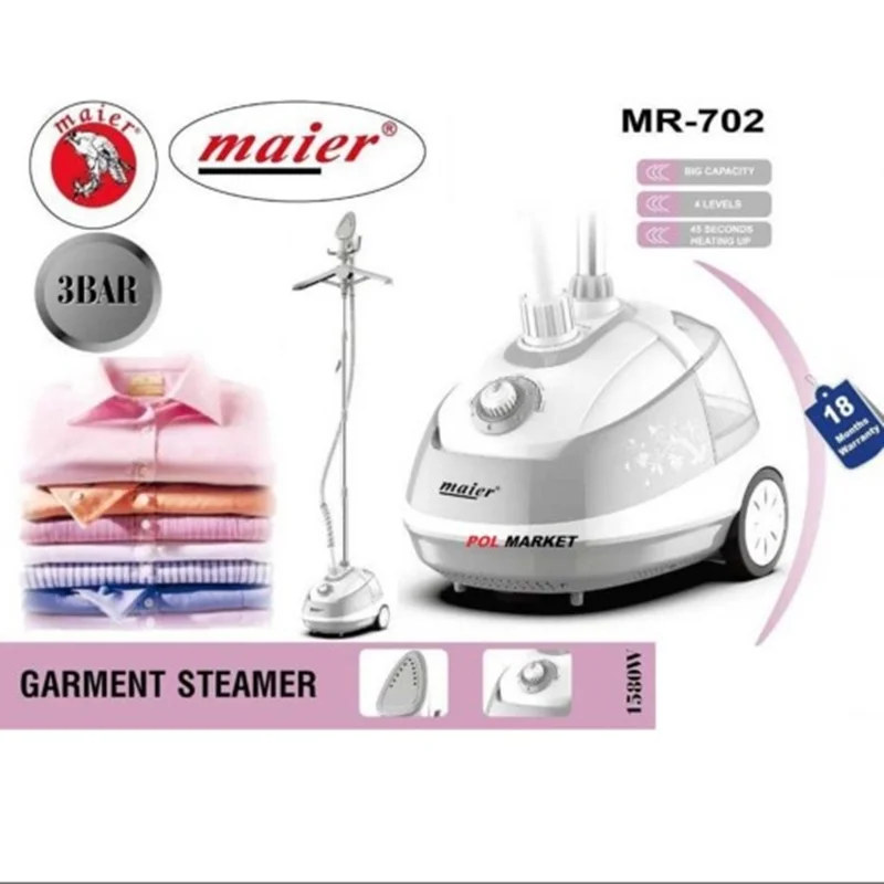 اتو بخار مایر مدل mr-702 ، یکی از سری اتو بخار های ایستاده مارک مایر آلمان است.انواع مختلفی از اتو در بازار وجود دارد که برای مصارف خانگی می توان اتوهای زیر را برشمرد:اتو بخار ایستاده ، اتو پرس ، اتو بخار مخزن دار ، اتو مسافرتی ، اتو بخار معمولی و اتو بخار پایه داردر اتوها توان حرارتی ، قدرت بخار ، جنس کف اتو از ویژگی های اصلی بشمار می رود.از دیگر ویژگی های با اهمیت اتو بخار معمولی می توان به ظرفیت مخزن آب ،قابلیت اتوکشی بصورت عمودی و امکاناتی همچون ضد رسوب و یا ضدچکه بودن است.در دسته دیگری از اتو ها که به بخارگر ایستاده ، یا اتو ایستاده معروف هستند.بخار گر ایستاده که شامل معمولا یک سری برای خروجی بخار ، یک قلاب برای آویزان کردن البسه ،یک مخزن بزرگ آب ، یک شلنگ برای اتصال بین سری و مخزن و قرار گرفتن مخزن بر روی چرخ های متحرک برای جابه جایی راحت اتو است.مکانیزم آنها به این صورت است که با استفاده از بالا به پایین کشیدن سری بخارگر با پرتاب بخار بر روی پارچه ، لباس یا پرده و … عمل می کند.و به راحتی می توانید انواع چین و چروک لباس و پرده و … را بدون نیاز به میز اتو انجام دهید.اتو بخار ایستاده 702 مایر ، از محصولات شرکت مایر بوده و در کشور چین تولید شده است.