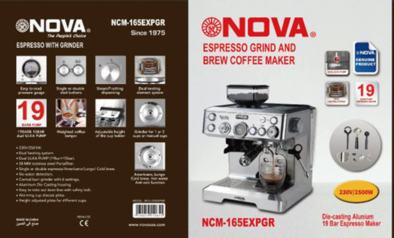 اسپرسوساز نیمه صنعتی برند نوا مدل ۱۶۵ با طراحی اختصاصی یکی از جدیدترین محصول nova