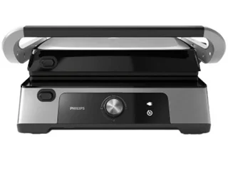 گریل فیلیپس مدل HD6301 دارای دو صفحه نچسب است که امکان آشپزی بدون روغن را میسر می کند. صفحه صاف برای طبخ غذاهایی همچون سبزیجات، ماهی و میگو ایده آل است و سطح شیاردار برای کباب کردن قطعات گوشت مانند استیک، همبرگر و یا سوسیس بدون افزودن روغن قابل استفاده می باشد. فیلیپس برای راحتی کار، این صفحات را با قابلیت جدا شدن طراحی کرده تا با قرار دادن آنها در ماشین ظرفشویی، تمیز کردن آنها سهل تر گردد. در زیر دستگاه سینی چکه گیری قرار گرفته تا چربی های اضافی به داخل آن سرازیر شوند و بو و دود کاهش یابد. 2200 وات، صفحات گریل Philips HD 6301 را به سرعت گرم می کند و دمای دقیق و ثابتی را برای نتایج عالی حفظ می کند. فرقی نمیکند برای یک یا چند نفر غذا می پزید، منطقه بزرگ کباب کردن همه چیز را حل میکند. پرس ساندویچ را 180 درجه باز کنید تا گوشت و سبزیجات از هر دو طرف به طور همزمان کباب شوند. ترموستات قابل تنظیم علاوه بر کاهش مصرف انرژی، نتایج مطلوب تر هر ماده غذایی را تضمین می کند. هر بار دمای مناسبی را تنظیم کنید تا ساندویچ، گوشت و سبزیجات را همانطور که دوست دارید، بپزید. صفحات پخت با حرارت بالا و پایه های ضد لغزش از دیگر ویژگی های قابل توجه این گریل فیلیپس محسوب می شود که محبوبیت آن را دو چندان کرده است. همچنین دستگیره را ببندید و قفل کنید تا گریل را با خیال راحت حمل و نگهداری کنید.